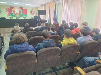 2 октября для учащихся 11 классов прошла профориентационная экскурсия в рамках Дня открытых дверей в ОВД Жлобинского райисполкома.Савицкий М.Ю. ст.инспектор группы кадров,майор милиции рассказал ребятам о памятных датах и знаках,связанных с работой милиционера,об особенностях службы сотрудников,провёл по зданию,ознакомил с техникой.Учащиеся посетили тир,где проходят учебные стрельбы.Михаил Юлианович ответил на все интересующие вопросы по поступлению в ВУЗы МВД,преимуществах обучения и требованиях,дал ценные советы по выбору будущей профессии.Если твоя мечта — стать офицером милиции,защищать закон и помогать людям,то это первый шаг к цели!Выбор за тобой!